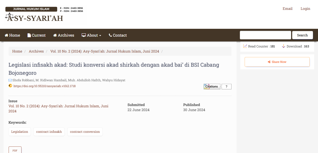 Legislasi infisakh akad: Studi konversi akad shirkah dengan akad bai’ di BSI Cabang Bojonegoro